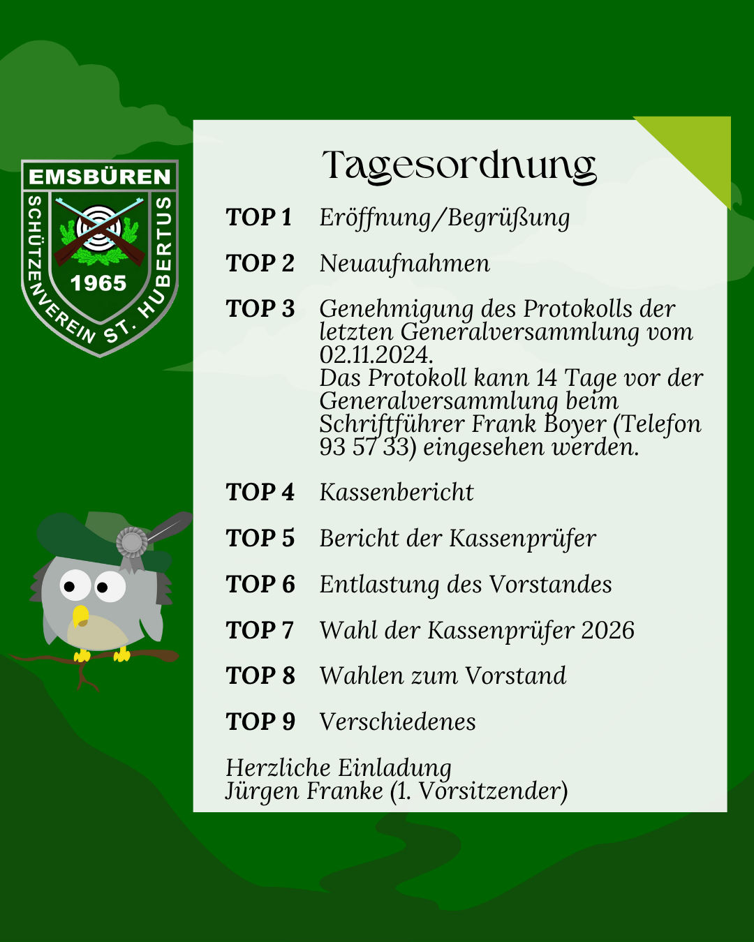 Generalversammlung am 01.11.2025 um 19:30 Uhr